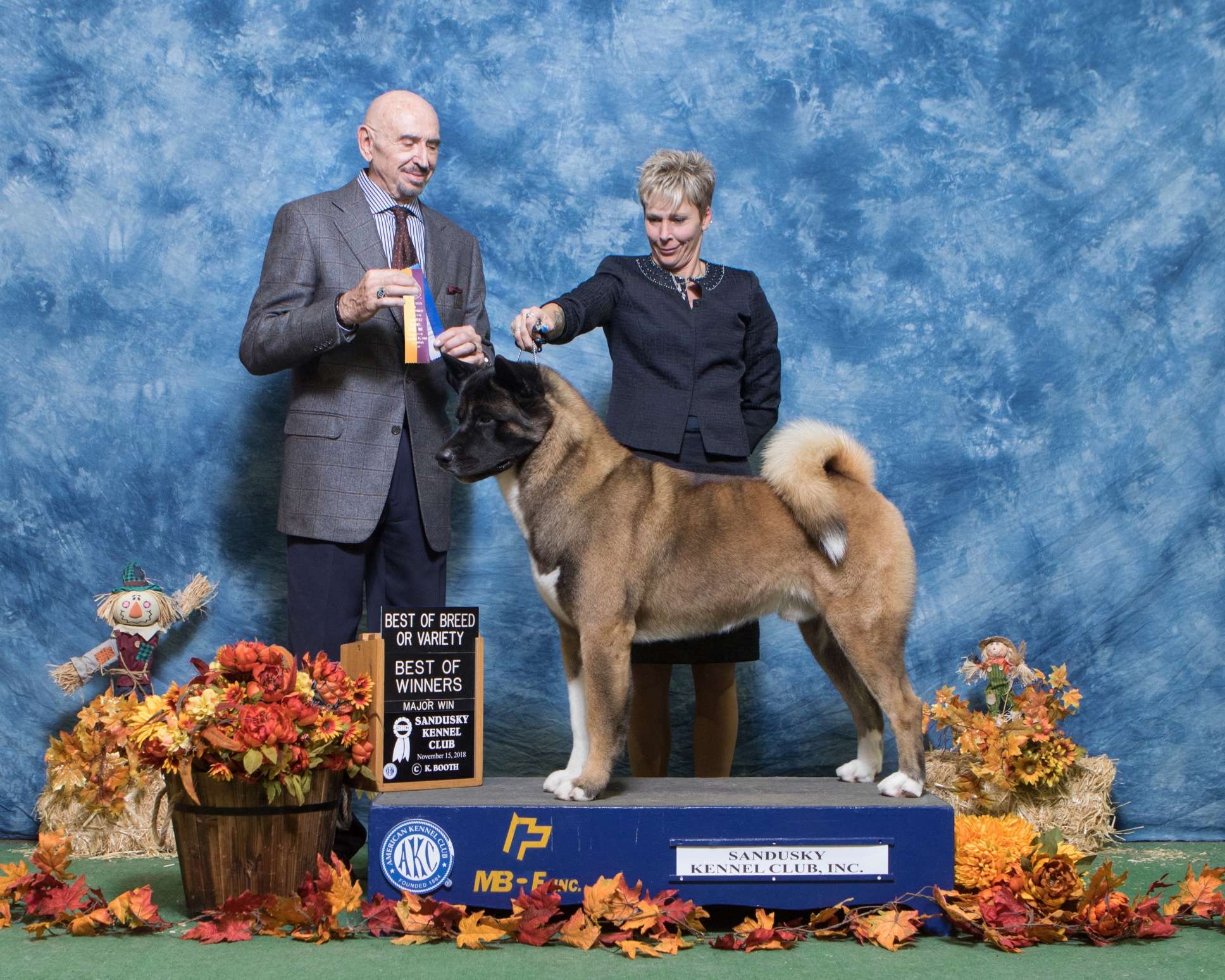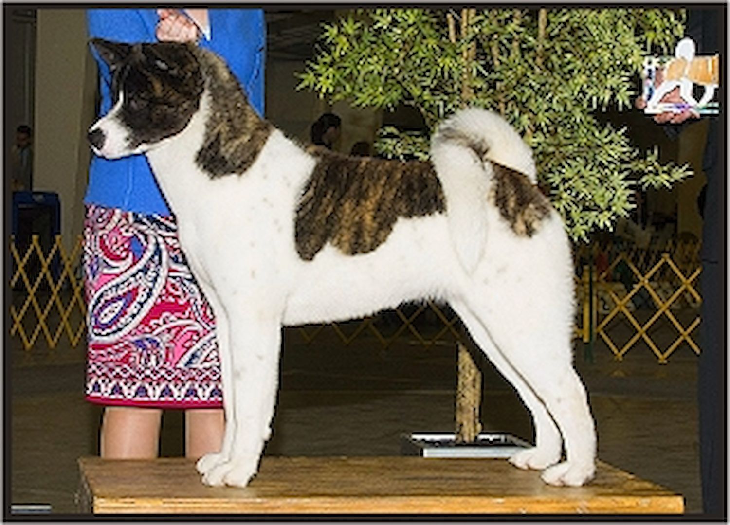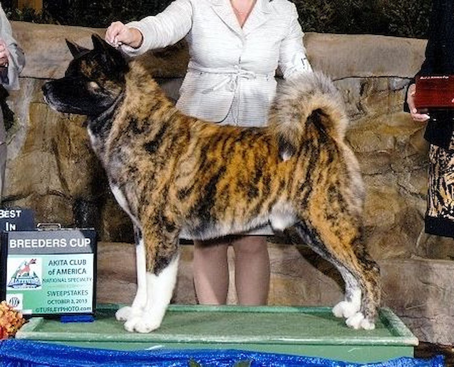 CH Ali'i AK Inu's Raise Your Glass Brindle, Black and White Mask, White Markings | BIS MBISS CH Cashmere's MaJer Decision AOM | CH Crown Royals See'N Stars ROMPX |